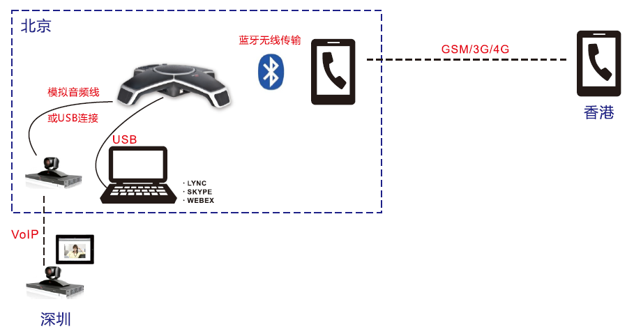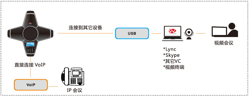 支持USB通话,支持Lync , ZOOM等VC平台,硬件视频会议终端.